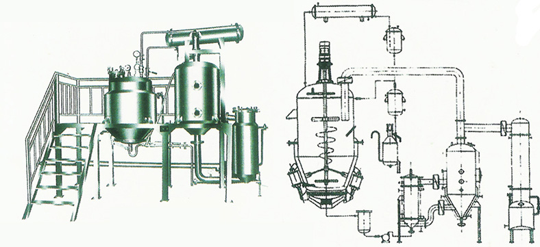 本機組主要由動態提取罐、蒸發濃縮器及工藝管道等組成,集動態熱回流提取、真空濃縮、溶劑回收為一體,并能在密閉狀態下連續而同步地進行提取與濃縮,濃縮時產生的溶劑蒸汽,經冷凝后回流到提取罐,并可用二次蒸汽對提取中物料再加熱,進行熱回流動態提取,適用于中藥、生物、食品、輕工等行業水和有機溶劑的常溫及60℃左右的低溫提取,具有投資少、效率高等優點。