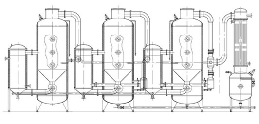 2、本濃縮器采用三效同時蒸發(fā),二次蒸汽得到反復作用,既節(jié)省了鍋爐的投資,又節(jié)約能源消耗,耗能與單效濃縮器相比降低70%。